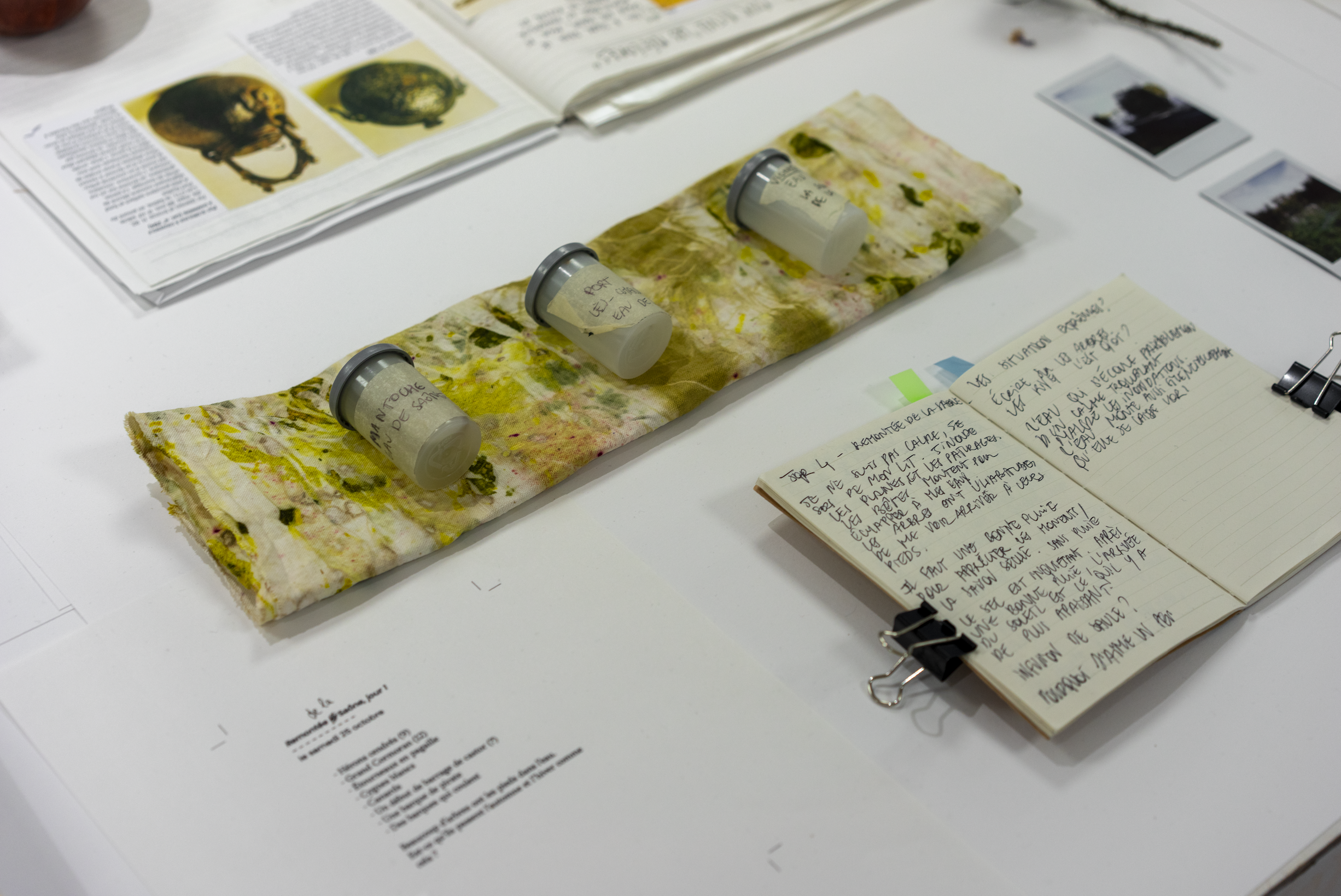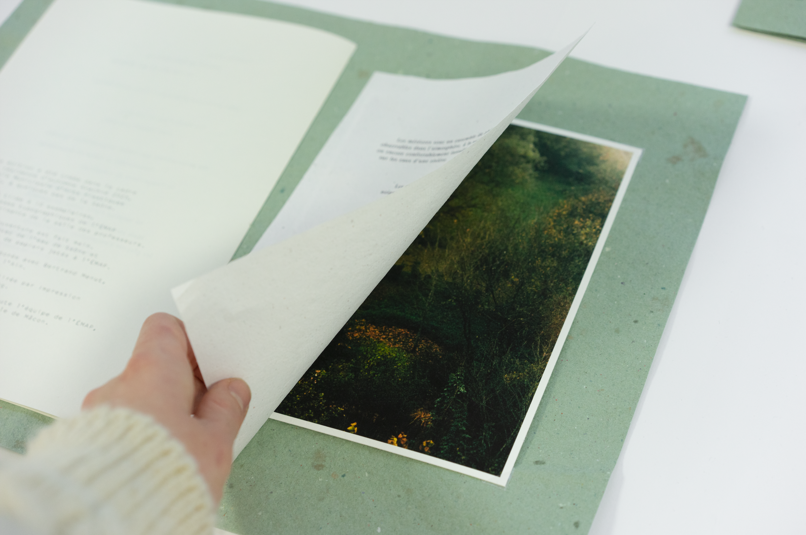 Cette résidence a donné lieu à une production mêlant écriture, édition, photographies, objets, et gestes collectifs. Mon travail oscille entre récit, observation et fiction documentaire. Je convoque des paysages, des gestes oubliés, des corps au travail, mais aussi une attention sensible portée aux milieux naturels et aux rythmes de la rivière.