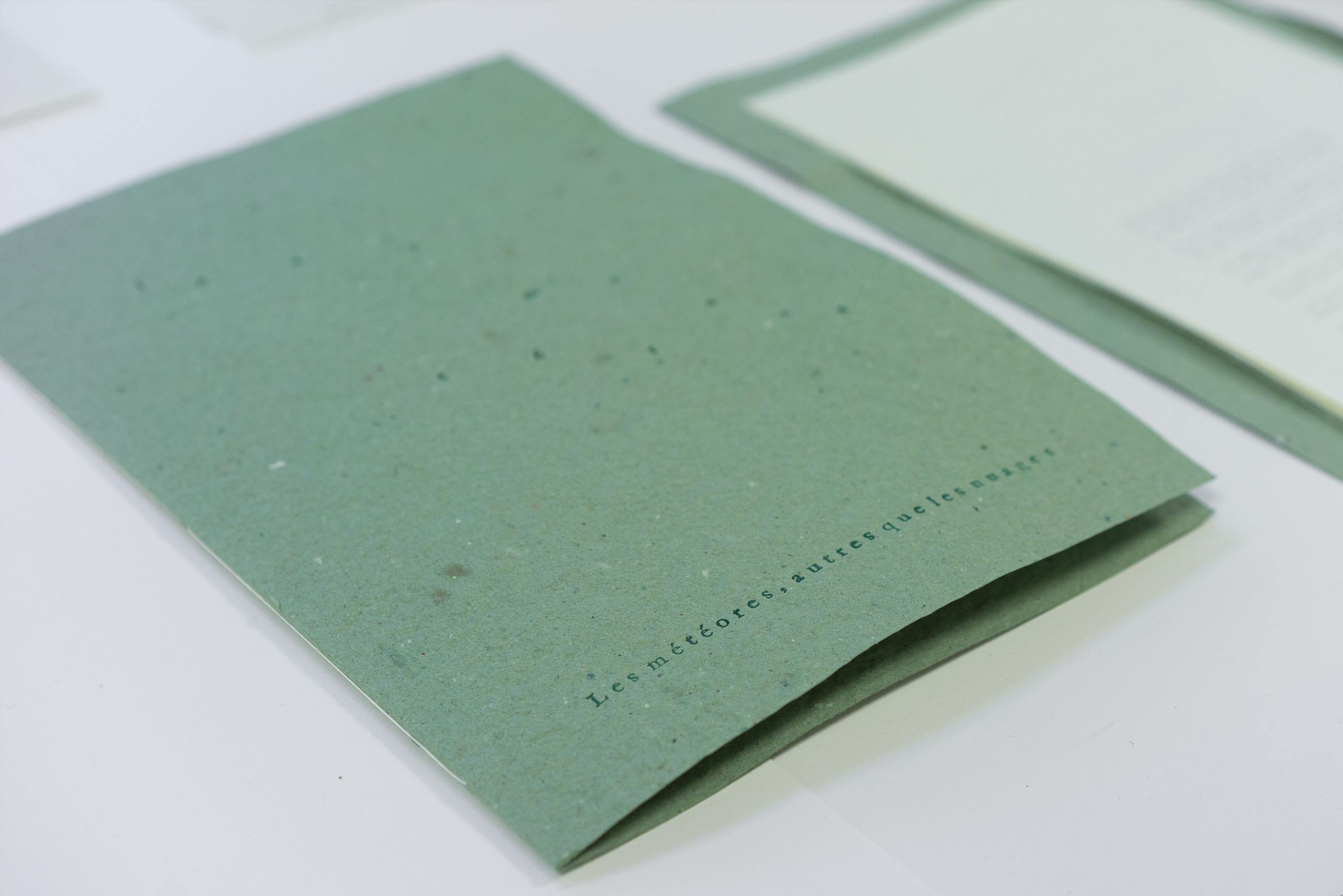 Le papier de couverture est fait main. Il a été conçu avec de l’eau de Saône et grâce au réemploi de papiers jetés à l’ÉMAP.